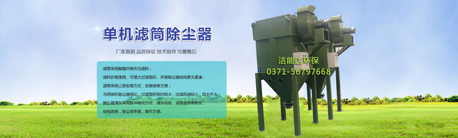 鄭州潔能達環保科技有限公司位于河南省鄭州國家高新技術產業開發區,是一家專業從事濾筒除塵器、布袋除塵器、水膜除塵器、脈沖除塵器、多管除塵器等環保設備設計、制造、銷售、技術服務、技術咨詢為一體的綜合性科技企業,擁有完善的技術和完善的加工制作體系,能滿足不同客戶的需要,是河南除塵器等環保設備的生產廠家。企業以技術進步、技術創新為主動力,不斷開發新產品,擴大企業的發展空間,形成了適應市場需求的主導產品。如:各種系列濾筒式除塵器、各系列布袋式除塵器、除塵脫硫一體化技術、各種除塵器配件等,其產品適用于各行業的除塵脫硫工程,完全能滿足現場揚塵、含硫設備的正常運行和排放要求,并且運行穩定,效率高,維修量小,達到和滿足國家和各地方大氣污染物的排放標準要求。